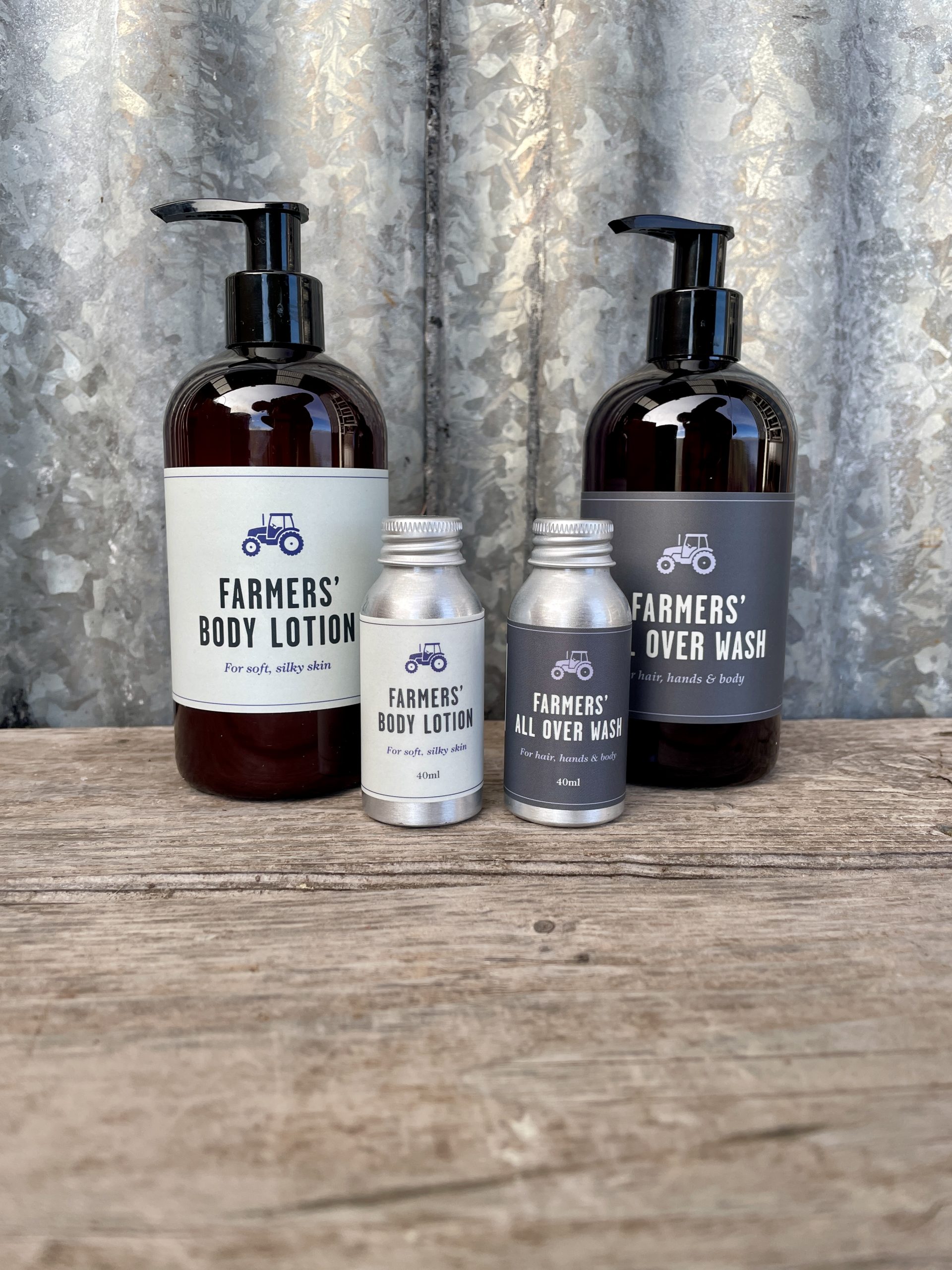 Our popular 3 in 1 ALL OVER WASH – for hair, hands and body – and our fabulously uplifting BODY LOTION…large bottles to stay on the farm & small handy ones to take on your travels.