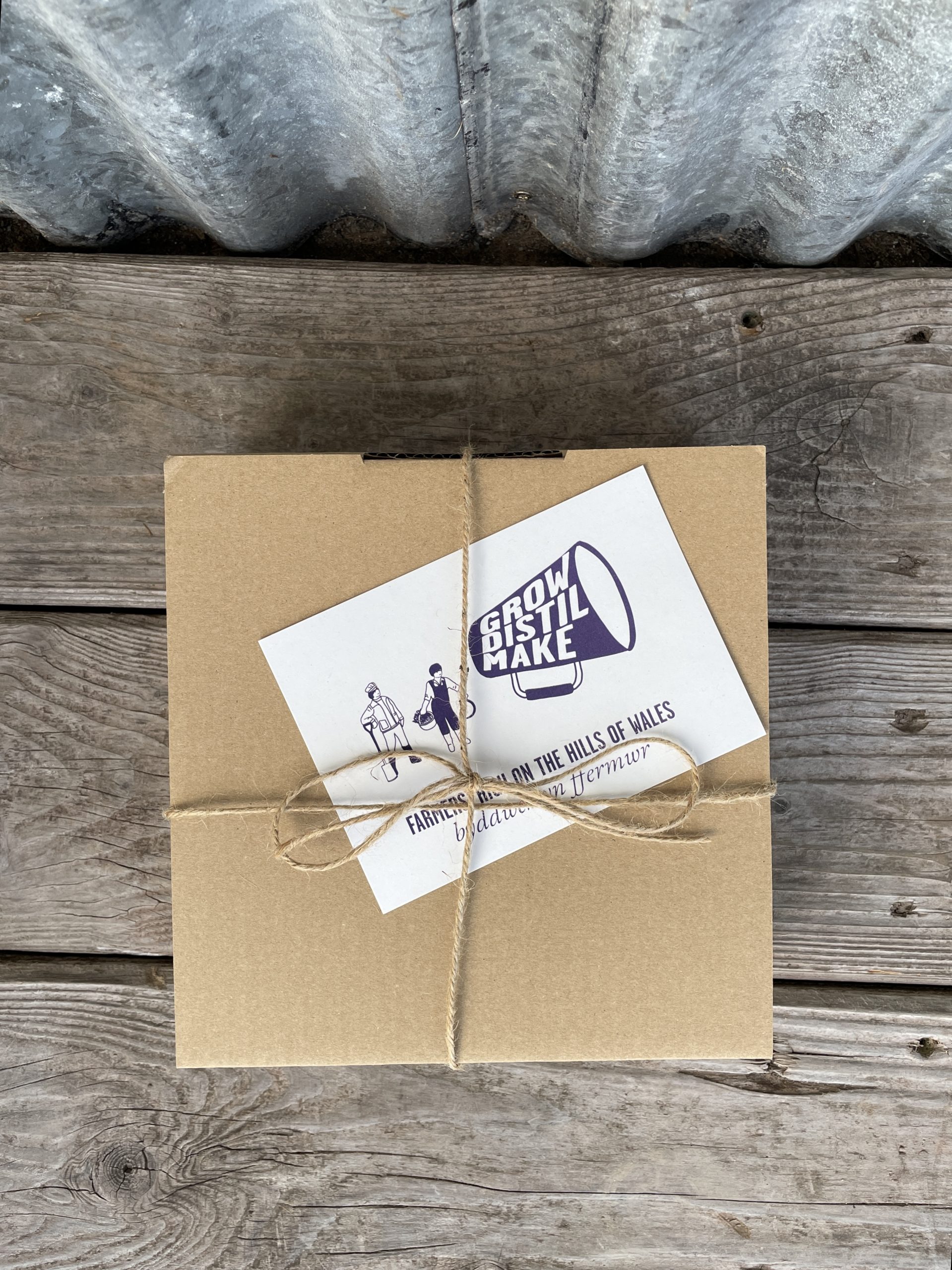 Cardboard box with attached lid.